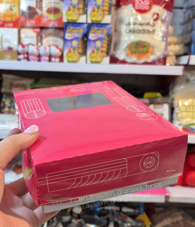 جعبه با درب طلقدار و زیره ی مقوا قنادی می باشد .